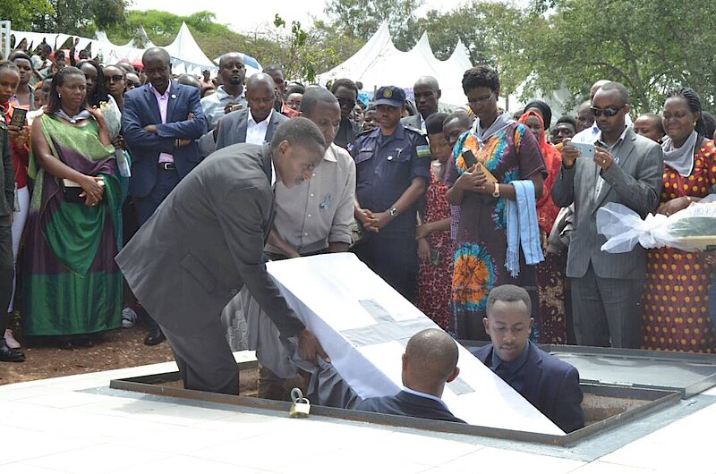 Gishari: Abayobozi n’abaturage bibutse Abatutsi bishwe muri Jenoside, hanashyingurwa mu cyubahiro imibiri 16