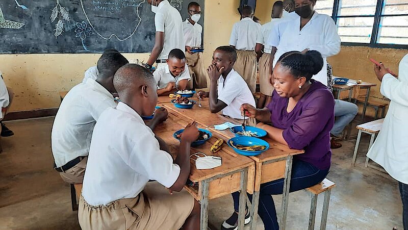 Mu gitondo cyo kuri uyu wa kane tariki ya 03 Werurwe 2022, Mu bigo by’amashuri byo mu karere ka Rwamagana hizihirijwe umunsi nyafurika w’ifunguro ku ishuri. Ku rwego rw’Akarere, ibirori by’uyu munsi bikaba byabereye mu rwunge rw’amashuri rwa Karenge(G.S Karenge), aho umushyitsi mukuru yari Meya Mbonyumuvunyi Radjab. Insanganyamatsiko y y’uyu mwaka ikaba igira iti: “Imirire no kuzamura ubushobozi bwa muntu muri Afurika binyuze mu kongera ibishorwa muri gahunda yo kugaburira abanyeshuri.” Mu mirenge yose, ibirori by’uyu munsi bikaba byagiye bibanzirizwa n’umuganda w’ibikorwa byunganira gahunda yo kugaburira abanyeshuri ku ishuri, abayobozi basangira ifunguro n’abanyeshuri, ndetse mu murenge wa Fumbwe ho ubuyobozi businyana n’abayobozi b’ibigo by’amashuri imihigo ijyanye no kurwanya impamvu zose zatuma umwana ava mu ishuri no kugarura abarivuyemo.
