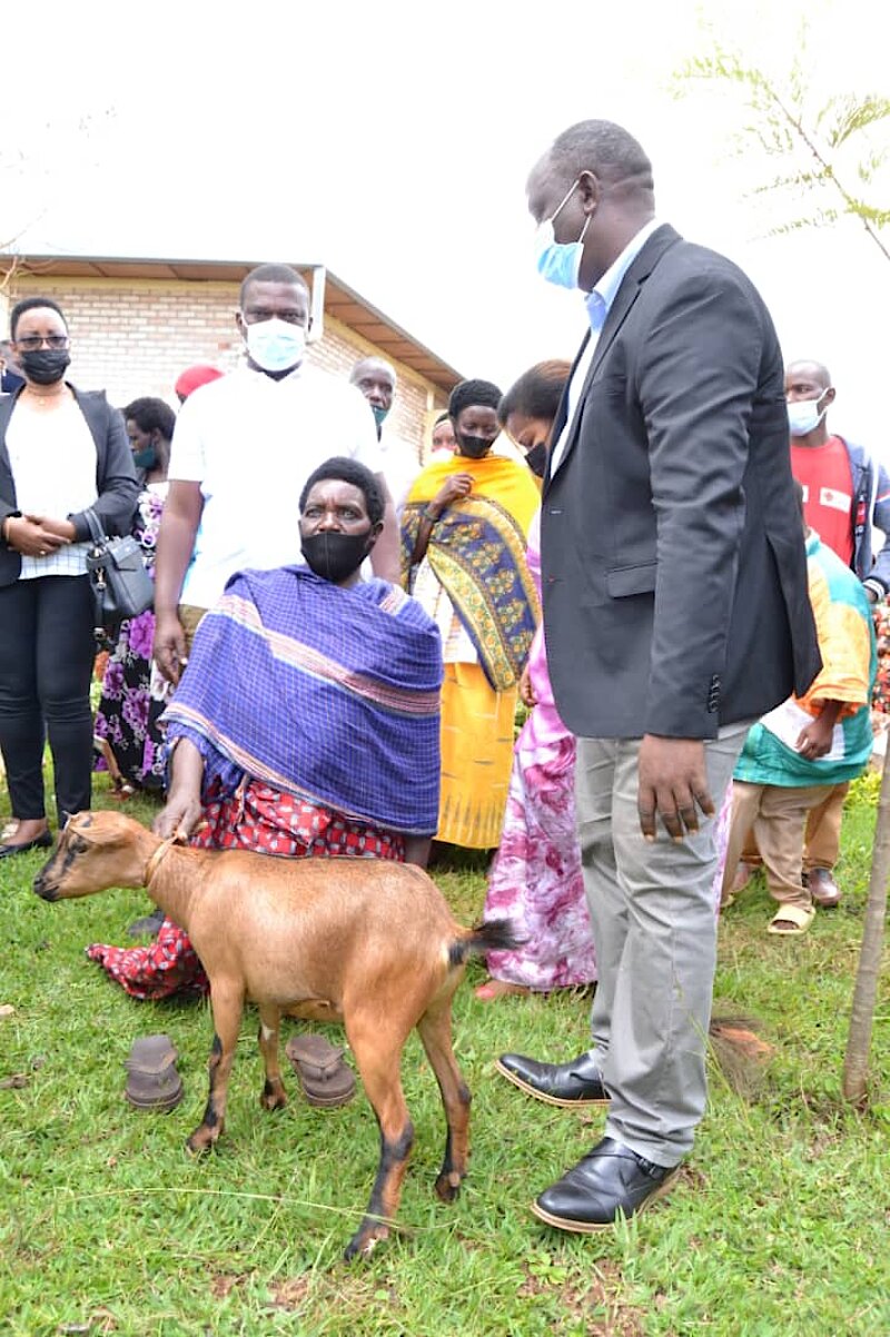 Mu rwego rwo gushyigikirana, abafite ubumuga baremeye imiryango imiryango 6 itishoboye irimo abafite ubumuga. Iyi miryango ikaba yorojwe amatungo magufi y’ihene.